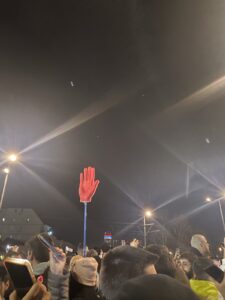 Die rote Hand ist das Symbol des Protestes in Serbien (© Jana Djordjević)